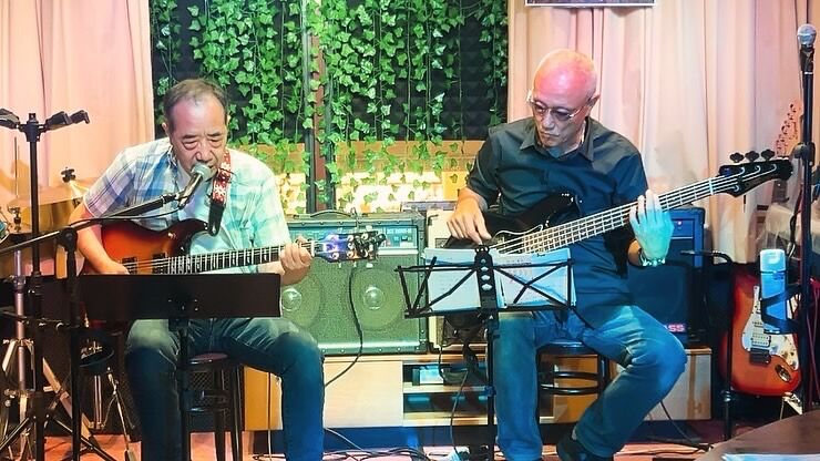 オリジナルの音源+ベースの弾き語りで〜まずは変拍子のナンバーからスタートです🤗‼️